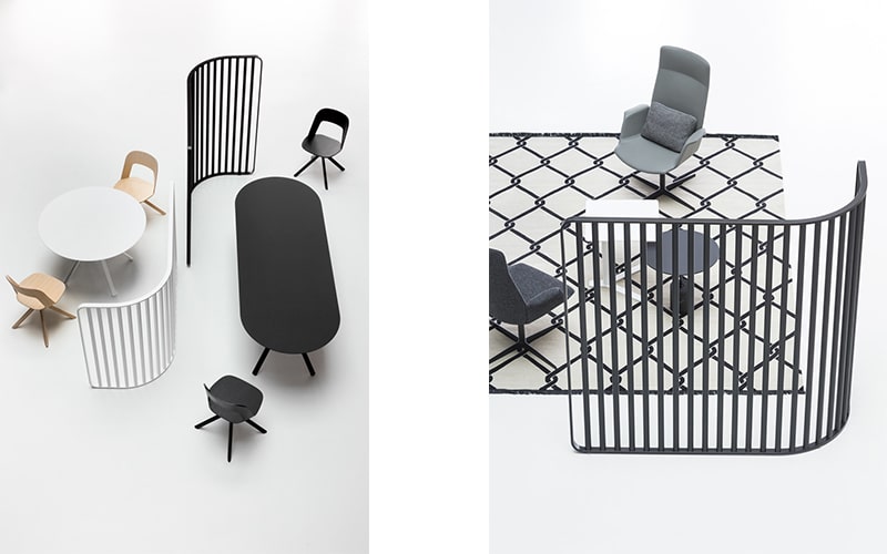 Comme la ponctuation, les panneaux coordonnent les phrases du bureau contemporain. Dans un grand open space, le système de séparation conçu par Francesco Rota permet de délimiter chaque poste, grâce à un système de de fixation magnétique. Un geste « invisible » et élégant qui offre de l’intimité en version légère. Polyvalence maximale dans les hauteurs et les solutions en tubes de bois ou en panneaux en tissu insonorisant. L’espace reste ouvert, l’esprit se concentre et se repose.
