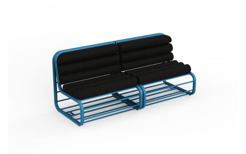 Le Banc Bultan est le fruit d’une démarche audacieuse d’upcycling mené par Maximum : il réutilise des barrières de sécurité endommagées, des tissus automobiles rejetés et mousses de haute qualité pour redonner vie à des matériaux souvent abandonnés.