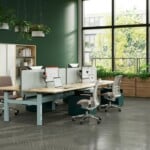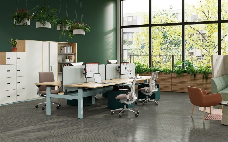 Le bureau / bench Migration réglable en hauteur permet aux utilisateurs de passer de la position assise à debout tout au long de la journée.