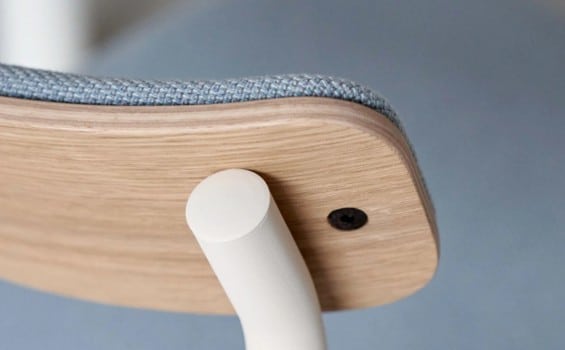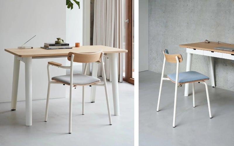 La chaise ÉTUDE associe un bois éco-certifié à un piétement acier robuste : design épuré, finition haut de gamme et conception 100 % européenne pour un usage responsable et modulable.
