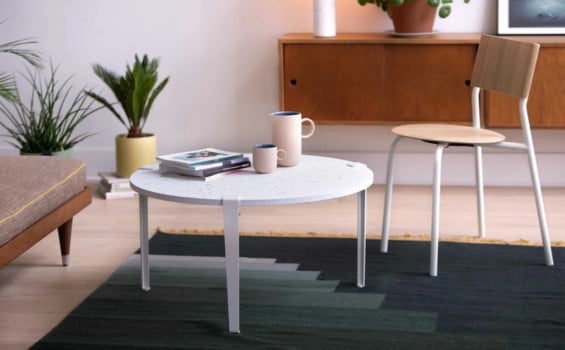 La table basse Venezia unit design singulier, matériaux recyclés à effet terrazzo, fabrication européenne, pour sublimer vos espaces.