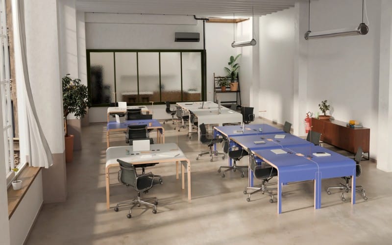 Le Bureau BUPO de Maximum est une pièce remarquable d’upcycling : il utilise des portes de bureau récupérées pour en faire un meuble fonctionnel et esthétique.